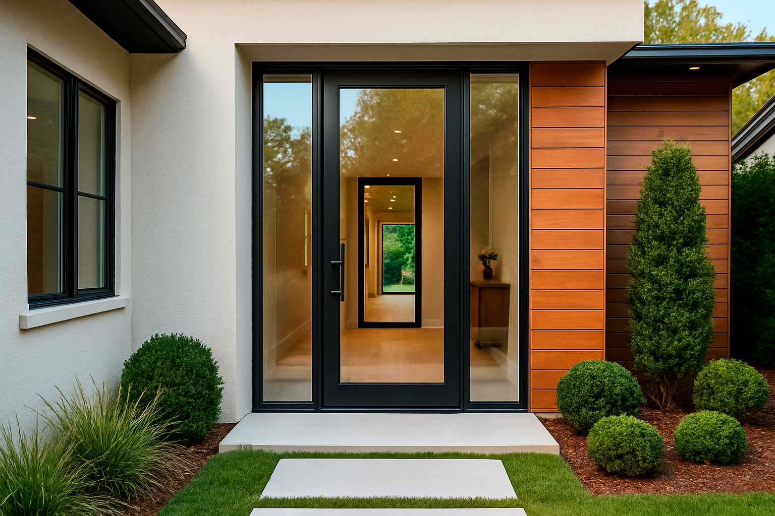 Панорамная входная дверь — это эффектный и современный элемент фасада. Она пропускает свет, визуально расширяет пространство и подчёркивает архитектуру дома. Но при выборе такой двери важно учитывать не только дизайн, но и безопасность, теплоизоляцию и долговечность.